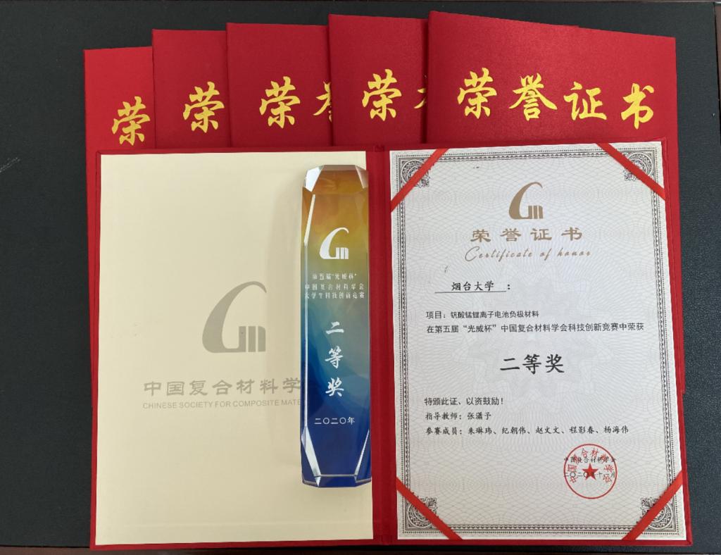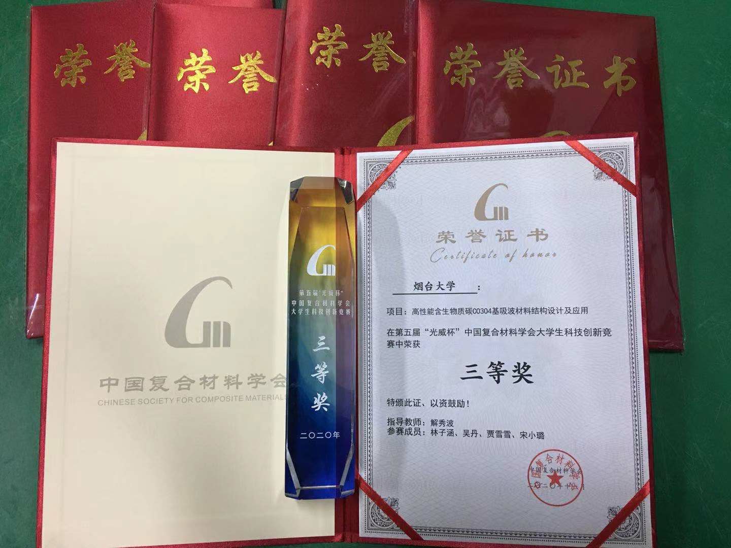 两支代表队荣获大赛二等奖和三等奖。在张潇予、解秀波两位老师指导下,由朱琳玮团队和林子涵团队组成的两支竞赛队伍,围绕“新材料、新创意、新世界”的主题,完成了“钒酸锰锂离子电池负极材料”和“高性能含生物质碳Co3O4基吸波材料结构设计及应用”两个项目,分别取得了大赛二等奖和三等奖的成绩。