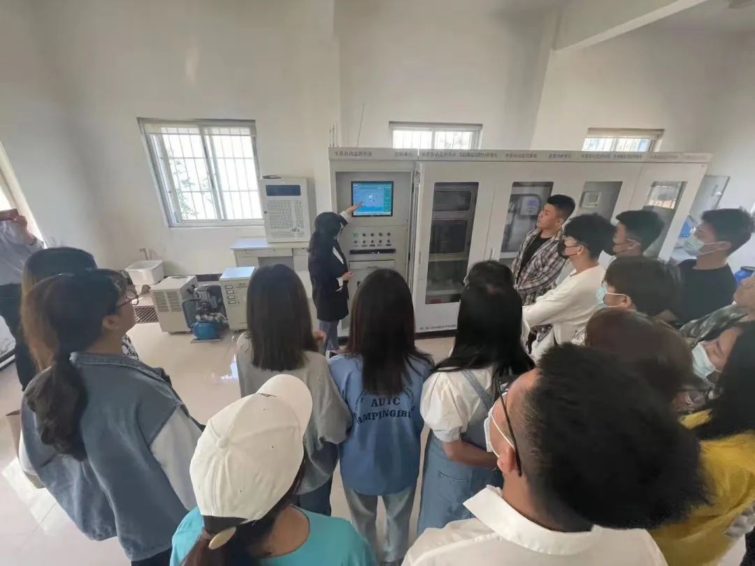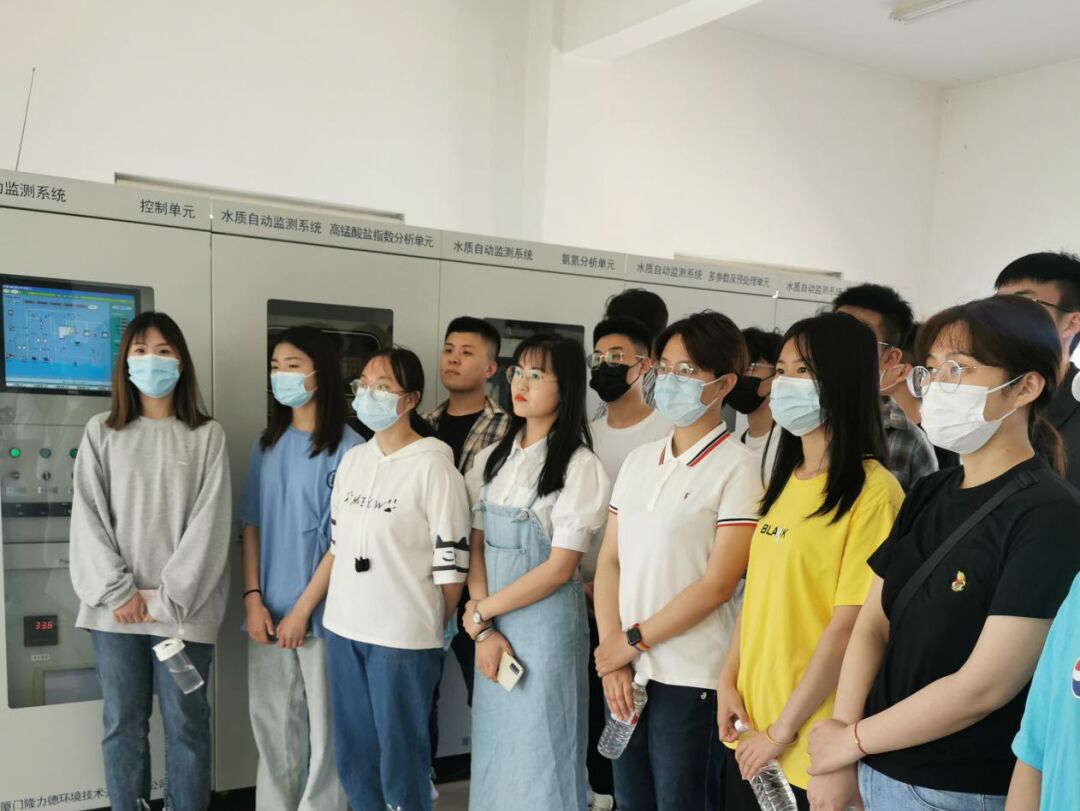 一走进监测站,同学们就好奇地围着监测仪器,边仔细观察仪器上的各种数据,边听中心技术人员介绍,“仪器可以对常规五参数(水温、pH、电导率、溶解氧、浑浊度),叶绿素a、氨氮、高锰酸盐指数、总氮和总磷等10项监测指标进行实时监测,监测系统每4个小时采样分析一次,监测数据实时上传至省、市监控平台。监测站的建立实现了对该饮用水源地水质的实时监测,发挥了有效的监测预警作用,保障了居民的用水安全。”在市环境监控中心技术人员的带领和讲解下,我院同学参观了水质自动监测站站房和仪器设备,水解了水质自动监测的基础知识,仪器的工作原理和全部自动监测工作流程。随后,同学们与监控中心和同在现场的水站运维公司技术人员就水质自动监测技术及水污染防治等问题进行了热切讨论和交流。