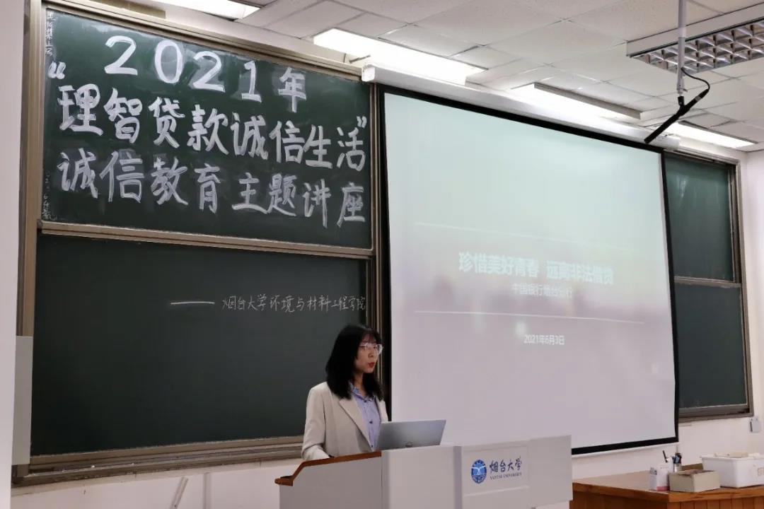 注重资源联动,提升活动专业性。6月3日,诚信教育主题讲座邀请中国银行滨海路支行营销副行长许朝蓬担任主讲人,他通过典型案例深入阐释了不良网络借贷的风险与危害,教育广大学生要做到合理消费,自觉抵制不良网络借贷。