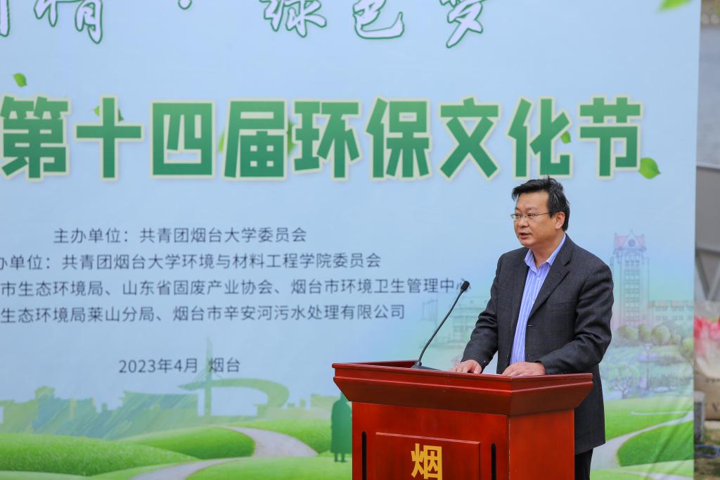 第十四届环保文化节开幕式在湖心岛举行。烟台市生态环境局、烟台市环境卫生管理中心、烟台市生态环境局莱山分局、烟台蓝天环境资产管理有限责任公司、烟台市辛安河污水处理有限公司、校团委、四虎影院