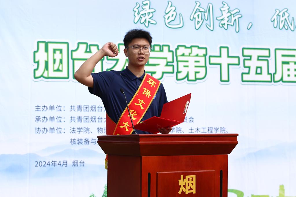 学生会主席团成员马业坤作为环保大使代表,带领全场学生庄严宣誓。