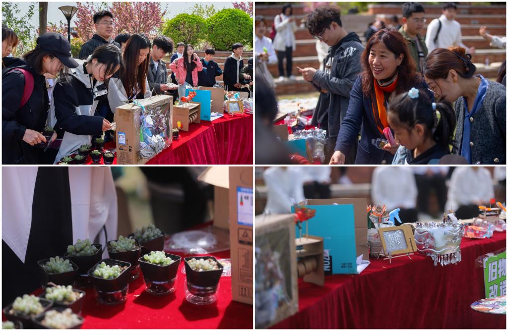 开幕式结束后,与会嘉宾参观了“创意环保”展。展览分“快闪”拼接塑料瓶小桌、“旧物改造,变废为宝”产品展、“手执春意,不负春光”多肉领养以及文创作品展等版块,旨在增强学生环保意识,提高创新精神和实践能力,涵养浓郁校园环保文化氛围。