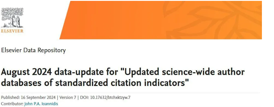 2024年9月16日,美国斯坦福大学和爱思唯尔数据库(Elsevier Data Repository)发布了第七版“全球前2%顶尖科学家榜单”(Stanford University Top 2% Scientists List)。该榜单分为“年度科学影响力(Single Year)排行榜”和“终身科学影响力(Career-long)排行榜”,前者聚焦于科学家在2023年度的学术成就,后者则关注科学家整个学术生涯迄今的影响力。四虎影院