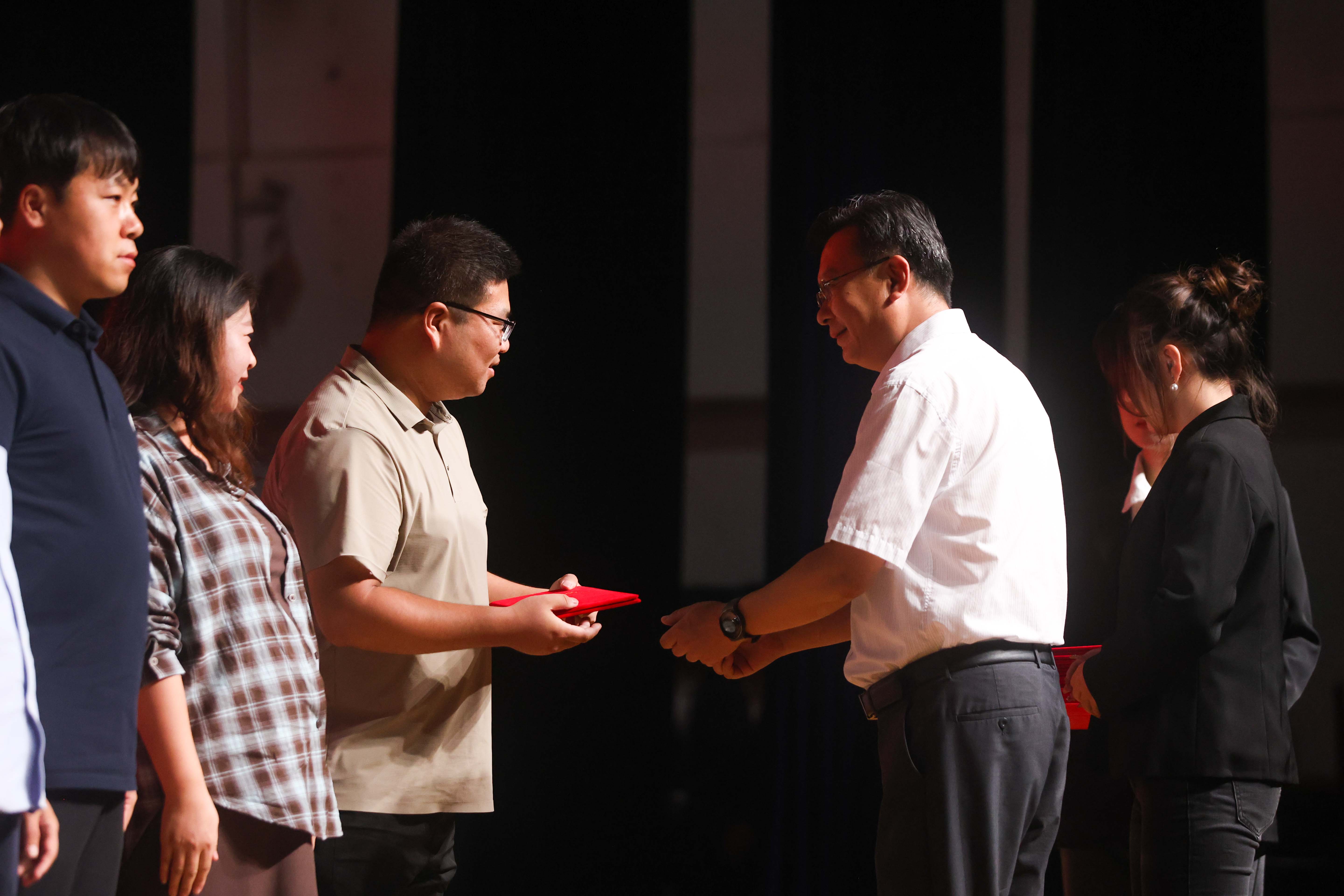 三寸粉笔,三尺讲台系国运;一颗丹心,一生秉烛铸民魂。教师是立教之本、兴教之源,是中华民族“梦之队”的筑梦人。典礼上,学院党委书记杨乃军为2025级班级导师颁发聘书,希望全体导师坚守为党育人、为国育才的初心,做学生健康成长的指导者和引路人。