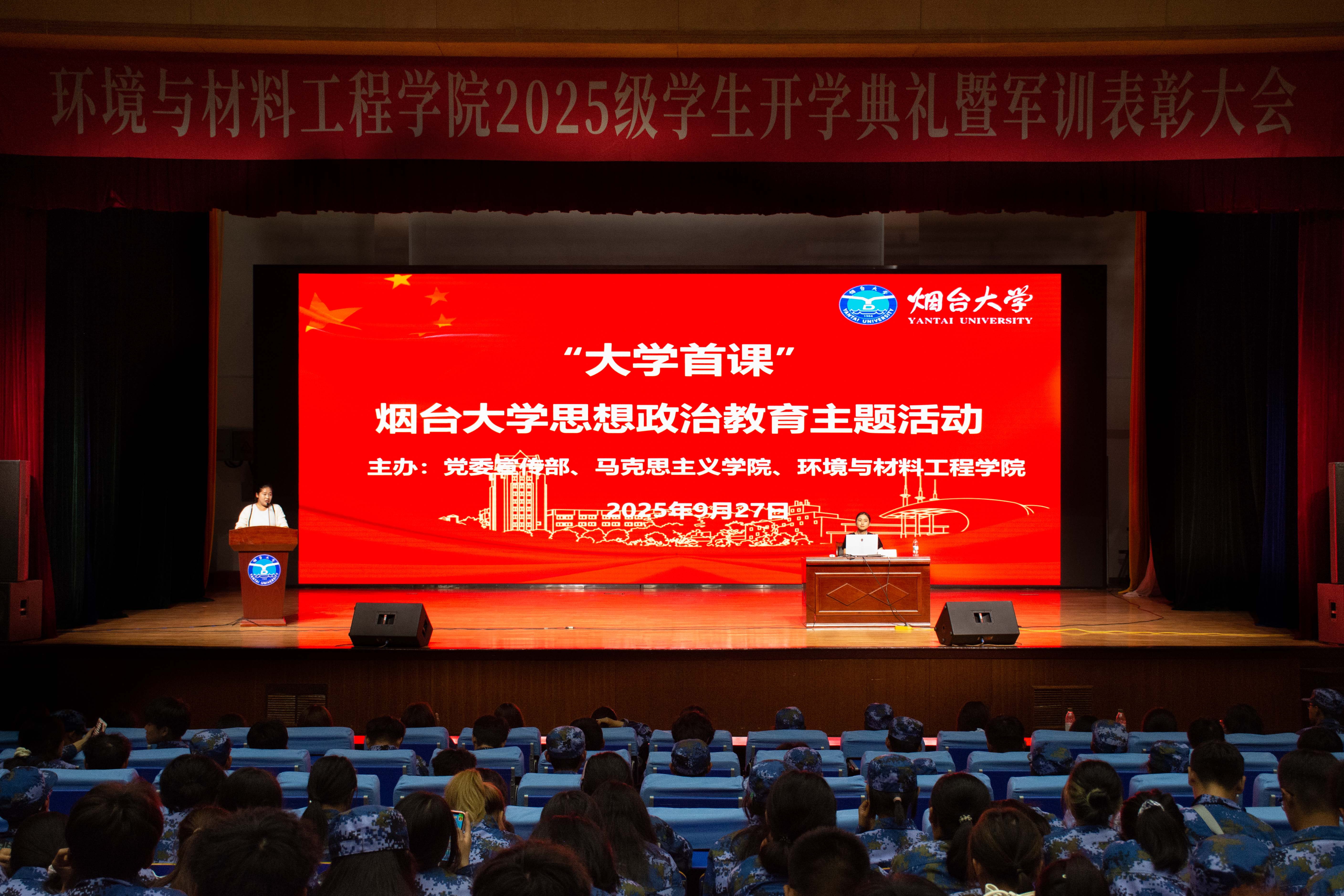 2025级新生开学典礼暨军训表彰大会在弘毅厅隆重举行。学院党委书记杨乃军,党委副书记、院长刘伟,党委副书记陈颖,副处级组织员徐海滨,副院长孙学勤,副院长丁晶,校友代表贾洪杰,院长助理解秀波,环境系主任张伟,材料系主任张玉平,教师代表侯传信,学院党政办公室主任苏跃华, 2025级班级导师,全体辅导员,2025级班级导师助理以及2025级新生参加典礼。大会由学院党委副书记陈颖主持。
