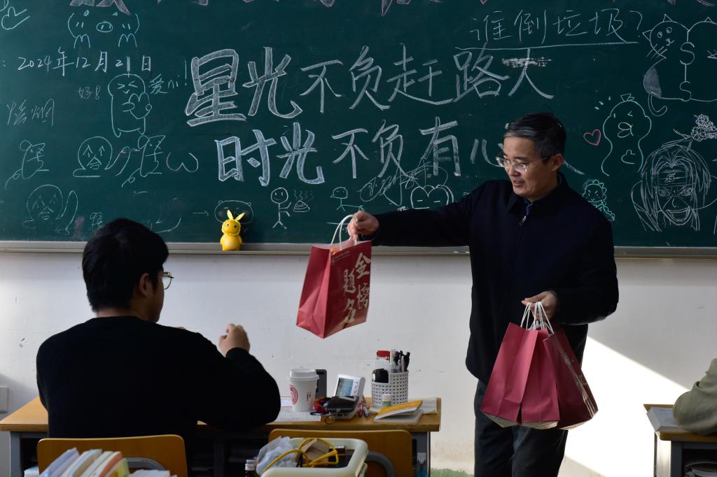 精心组织了考研学子慰问活动。学院院长刘伟、党委副书记陈颖、副院长孙学勤、丁晶、毕业班导师和学院辅导员齐聚一堂,为正奋力拼搏的莘莘学子送上最诚挚的问候与最坚定的支持,让寒冬备考路暖意融融。