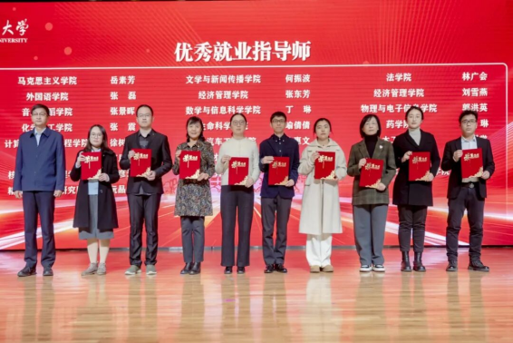 丁晶(右五)荣获“优秀就业指导师”荣誉称号