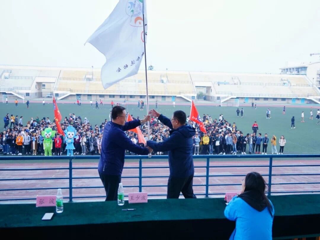 党委书记王少波就本届运动会总结致辞并向全体裁判和工作人员表示衷心的感谢。会旗交接仪式之后,核学院党总支书记张波表示作为下一届联合运动会主办方,核学院将积极做好筹备工作。