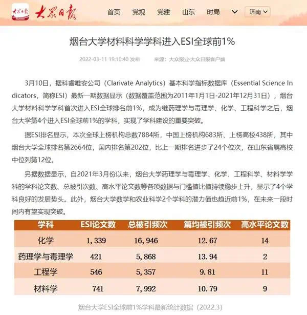 学院现有山东省一流学科1个、一级学科硕士学位授权点2个、专业硕士学位授权点2个。拥有山东省黄河流域新型污染物控制及智能决策协同创新中心、山东省核能与储能关键材料特色实验室、山东省材料科学高层次人才工作站等多个省部级科研平台。2022年材料科学学科进入ESI全球前1%,2023年材料科学与工程、环境科学与工程两大学科全部入围软科世界一流学科排名。